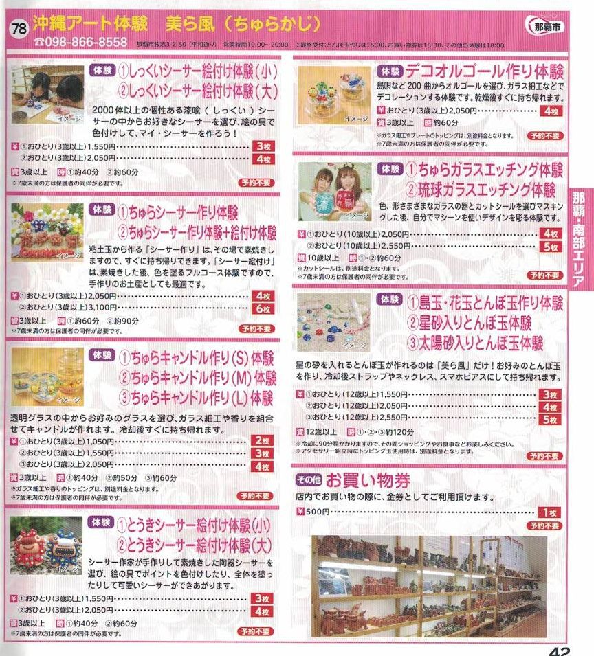 シーサー作りや絵付け、キャンドル作りなどの体験の他、