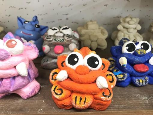 오키나와의 전통적인 류큐토에서 도기의 입체 시서를 만드는 코스입니다.
