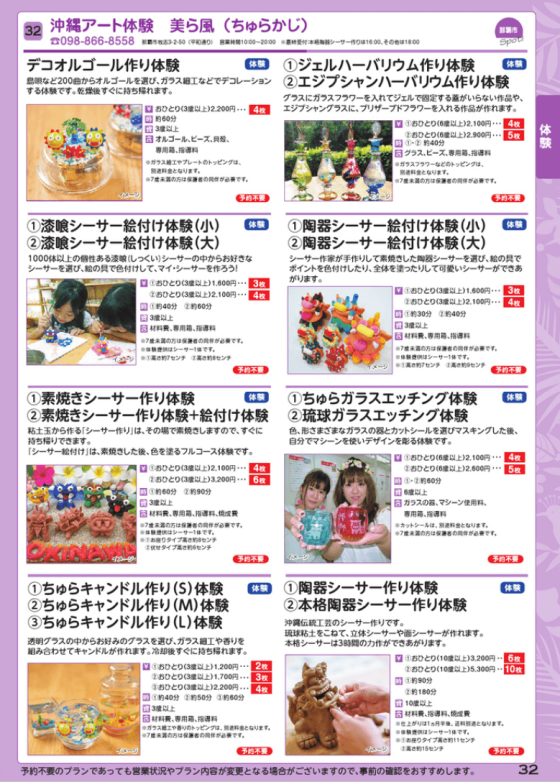 シーサー作りや絵付け、キャンドル作りなどの体験の他、