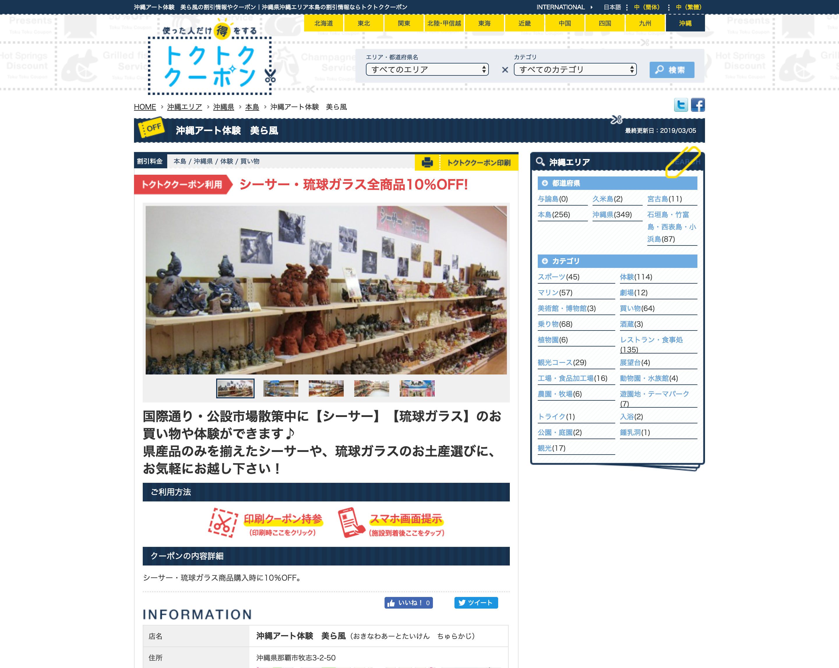 美ら風ではクーポンご提示でシーサー・琉球ガラス全商品が10%OFF!