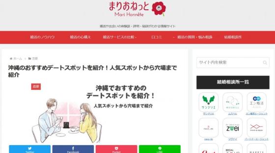 婚活や出会いの体験談・評判・秘訣がわかる情報サイト「まりおねっと」の「沖縄のおすすめデートスポットを紹介!人気スポットから穴場まで紹介」に掲載されました!!https://www.yoi-en.com/media/renai/okinawa-date.html