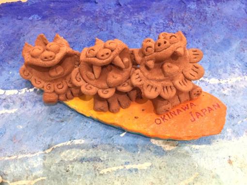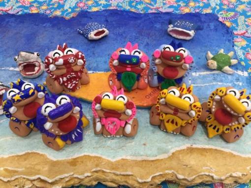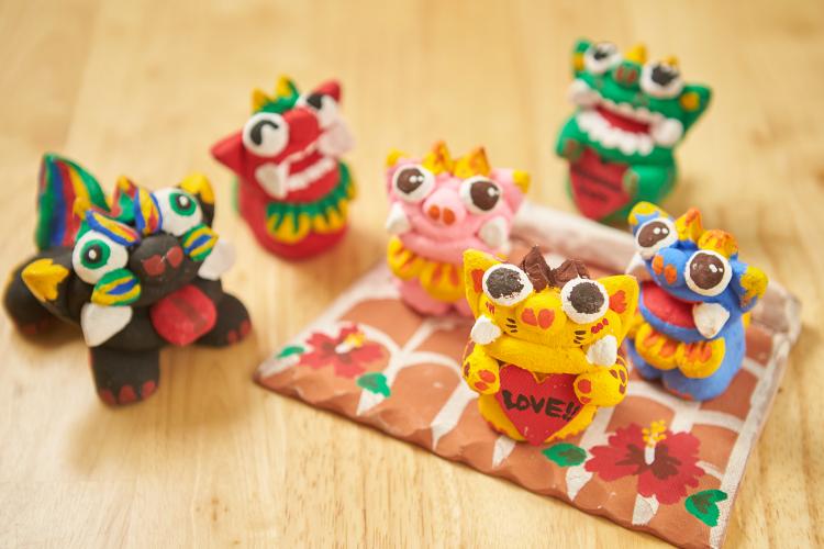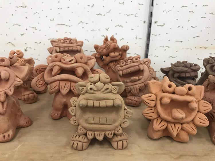 沖縄の伝統的な琉球土で陶器の立体シーサーを作るコースです。